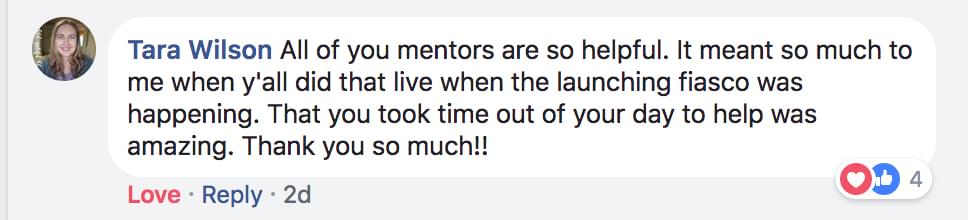 You can stay for our next LIVE online training in our private Facebook group. And you can ask questions and participate and grow.